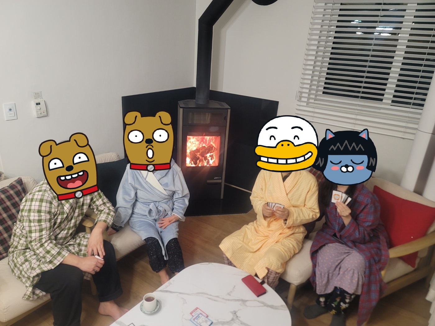카드 게임 중에 기념 사진을 찍었다